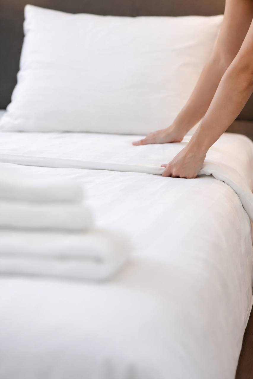Corner Deluxe apartments (42 sq. m) are ideal for a family of 2-4 people. There is a private bathroom, a double bed, a folding sofa, a desk and a kitchen area with all the necessary appliances: refrigerator, electric hob, microwave and washing machine. The complex has 21 Corner Deluxe apartments available for both short and long-term rental periods.